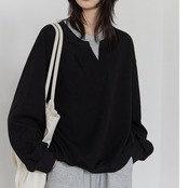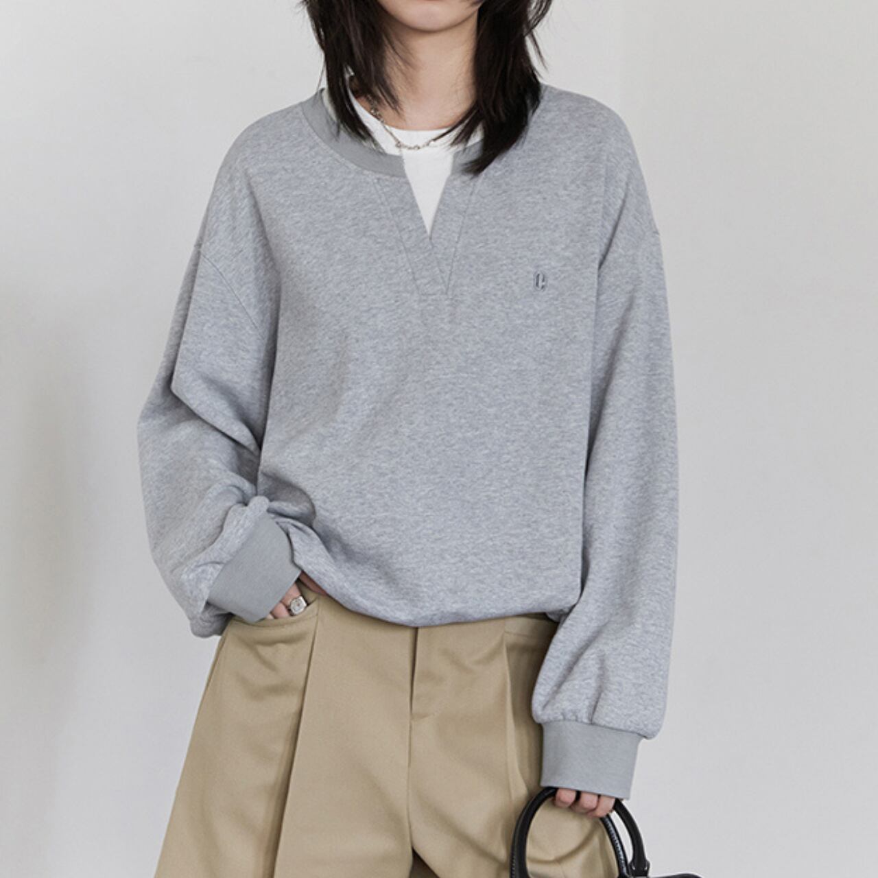 Vネックなので、カジュアルながらも女性らしさを演出してくれます。