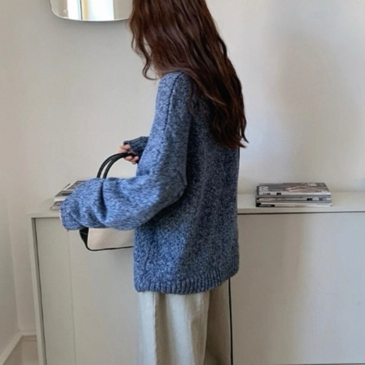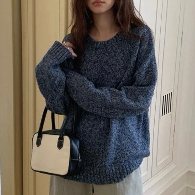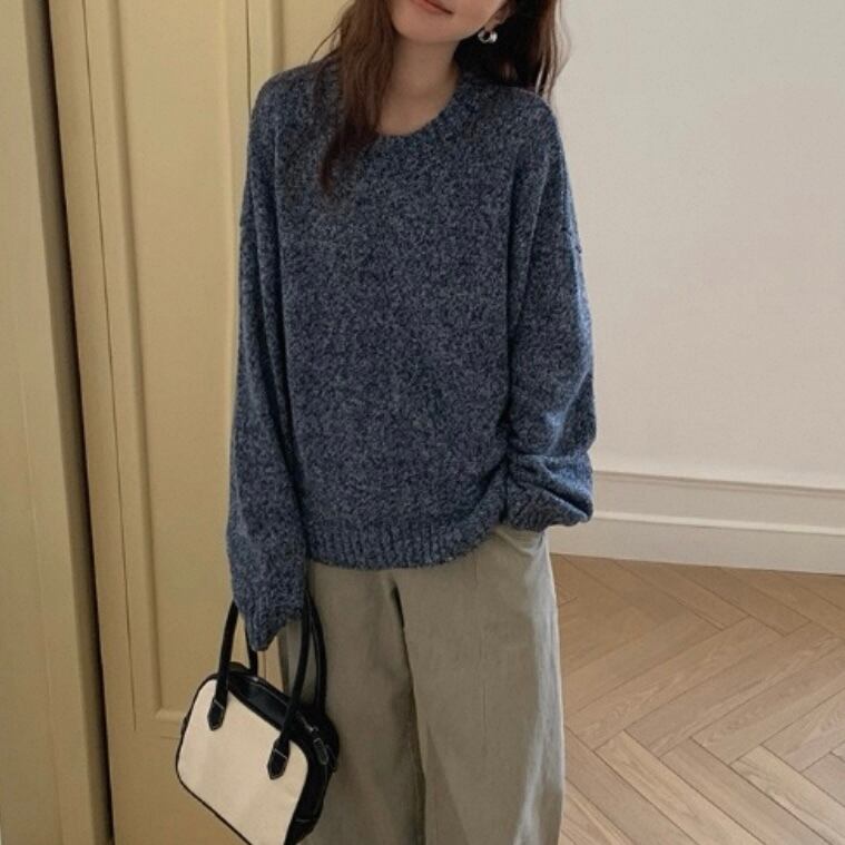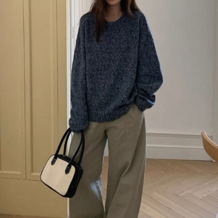 クルーネックなので、様々なインナーと合わせやすいのがポイント。