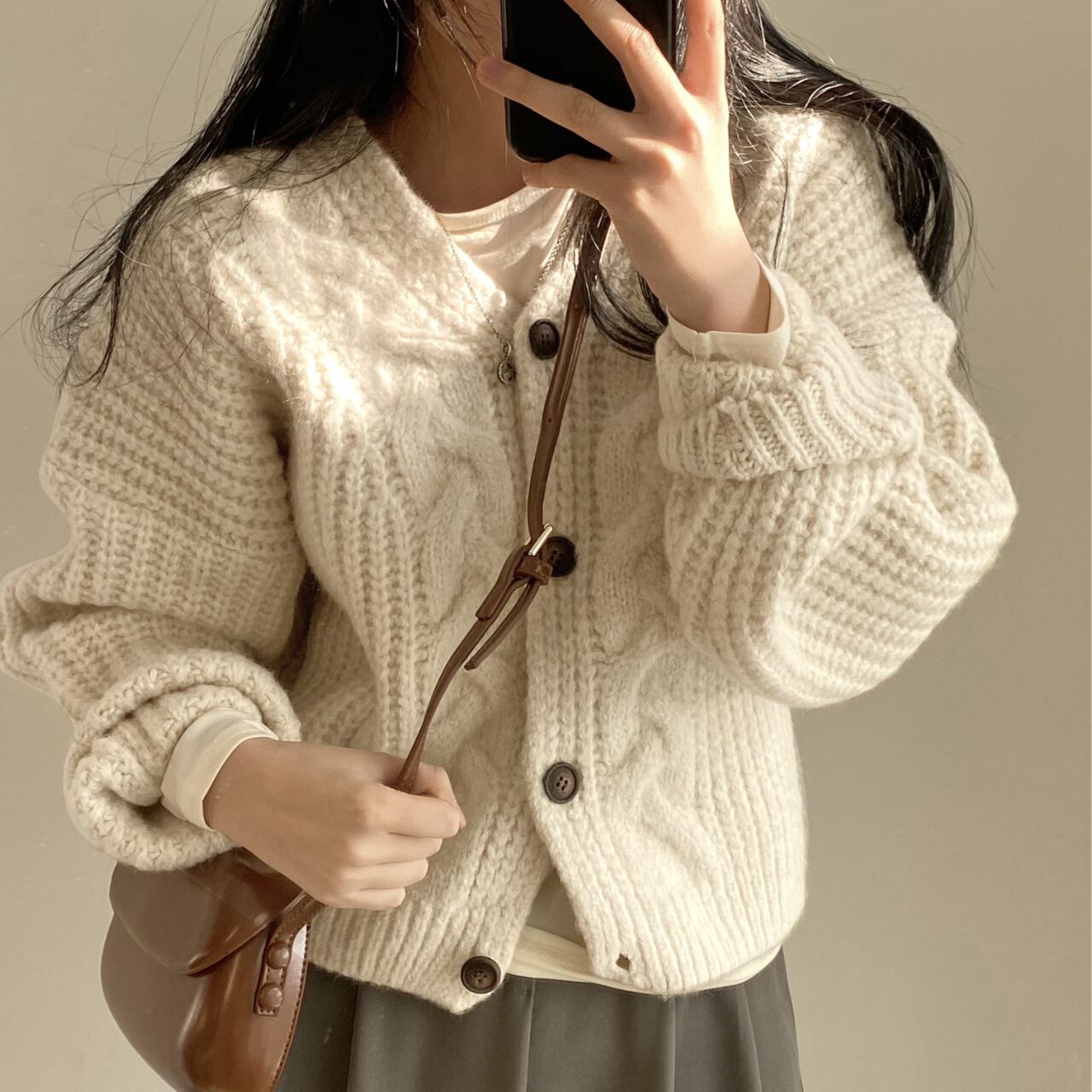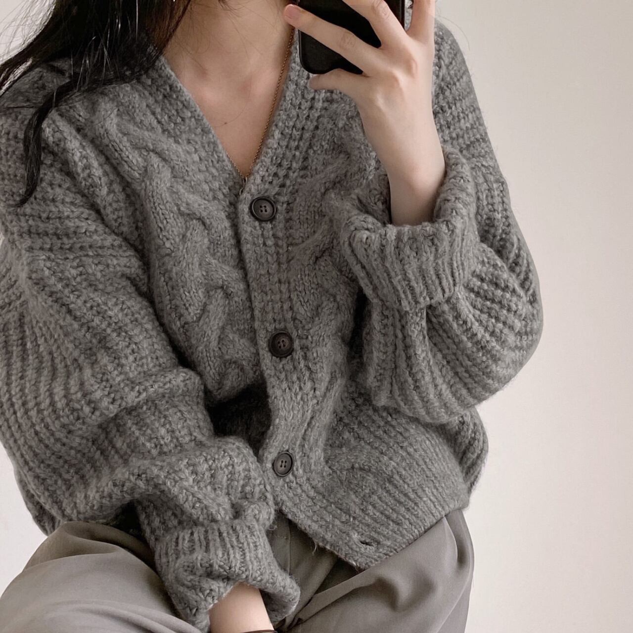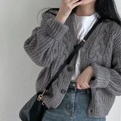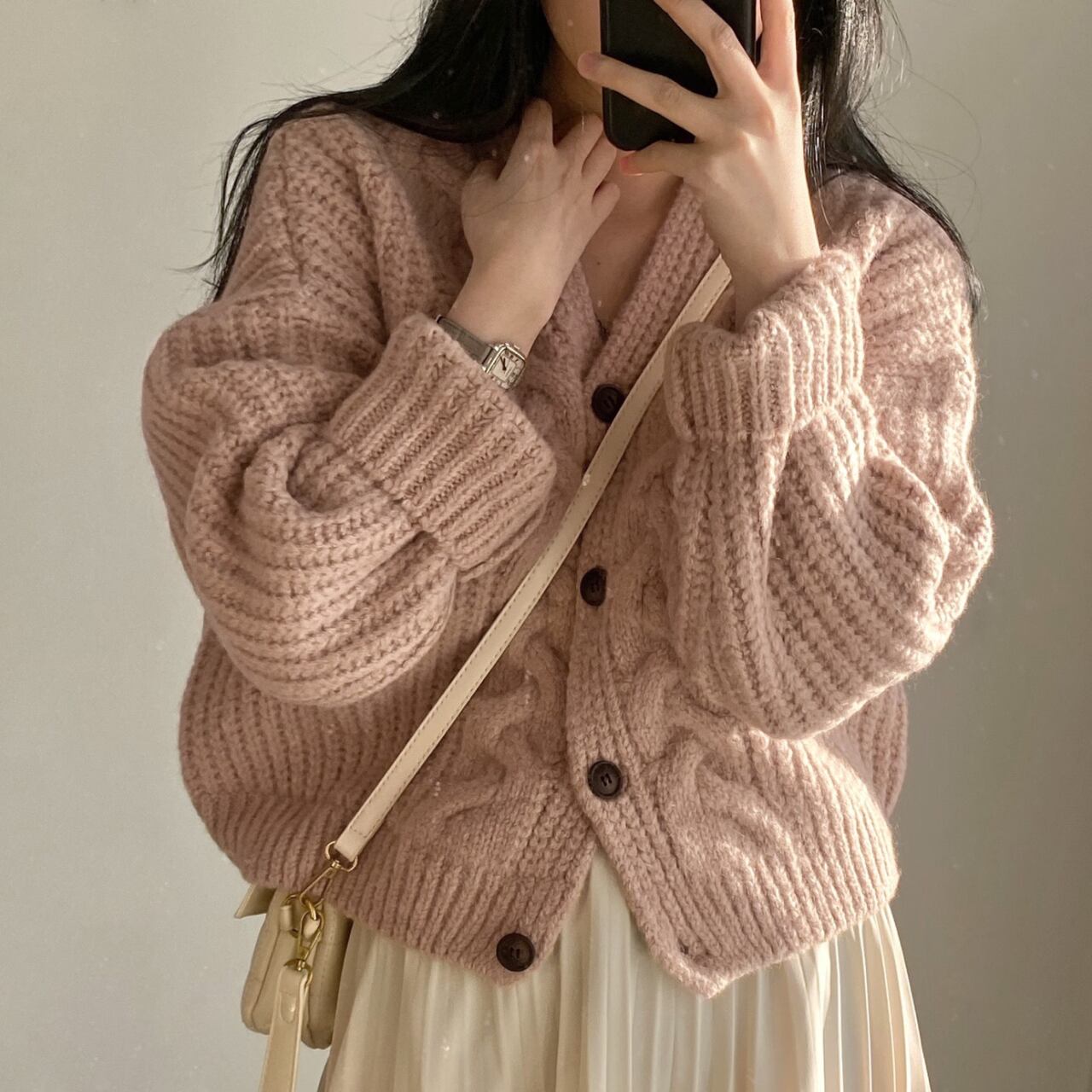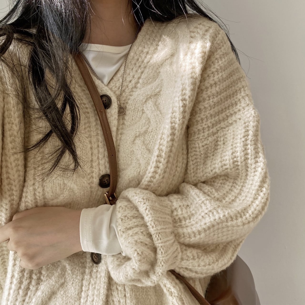 シンプルなデザインで、ナチュラルな雰囲気を演出できるニットカーディガン。