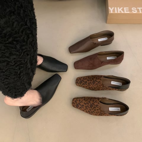 カジュアルにもきれいめにも合わせやすいスリッパ。