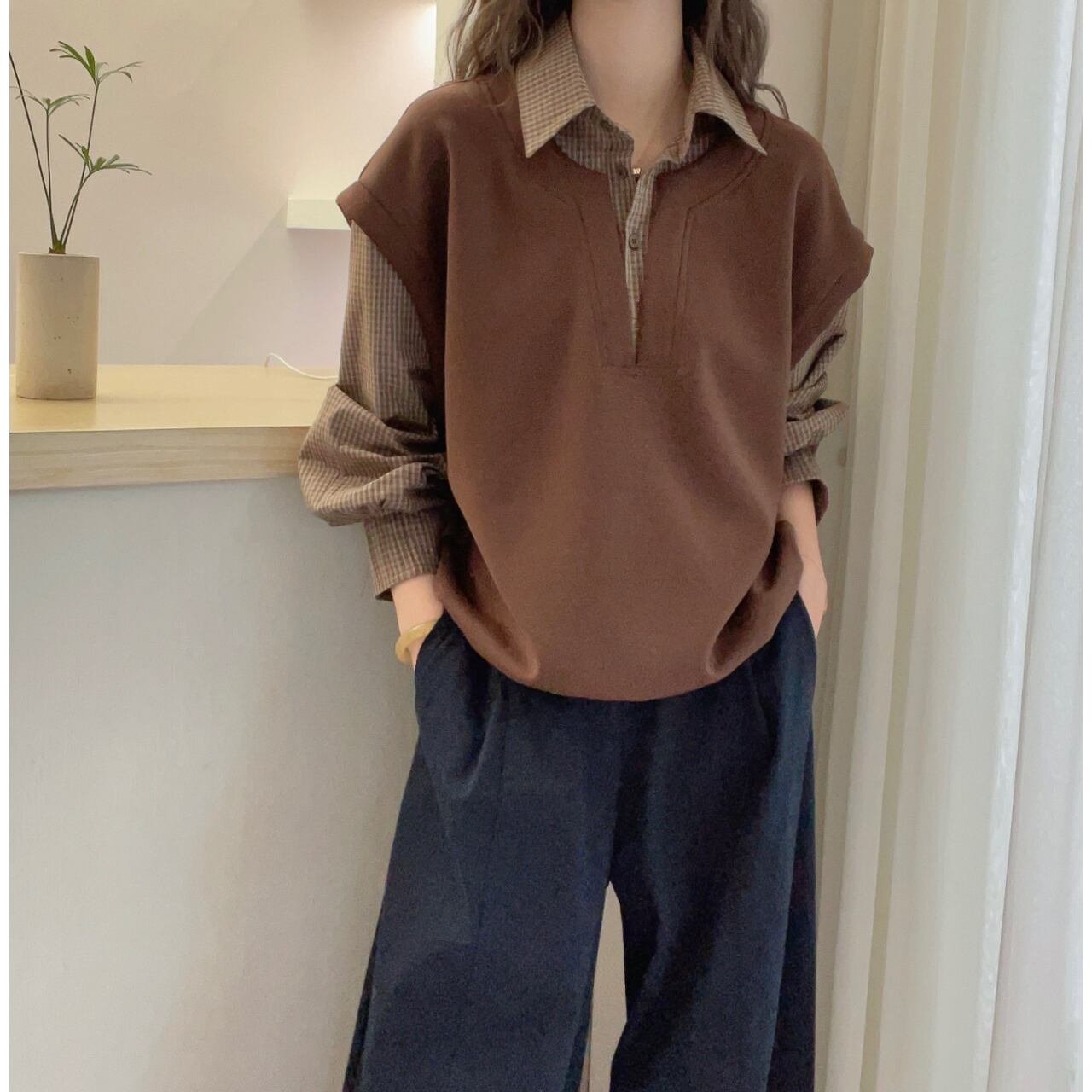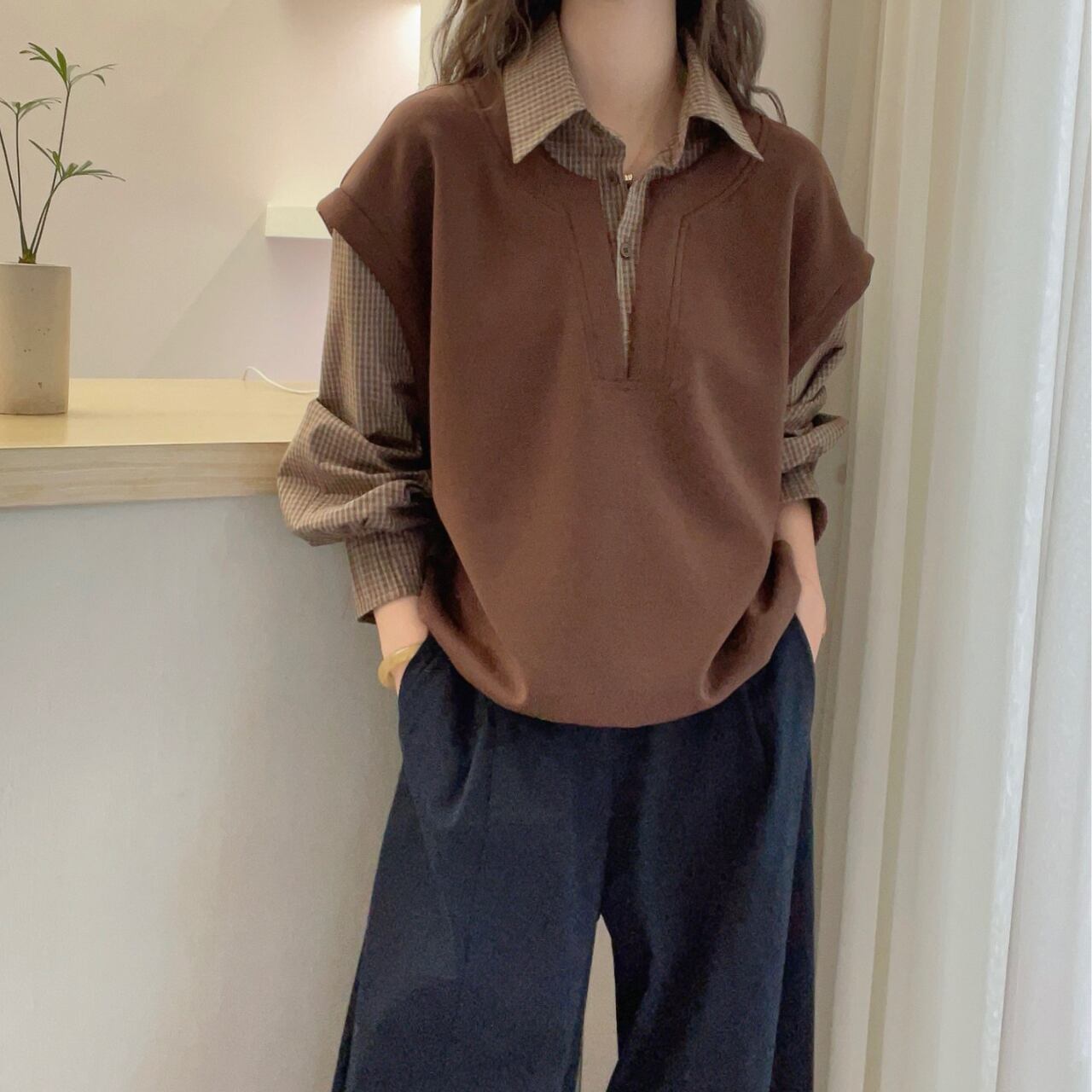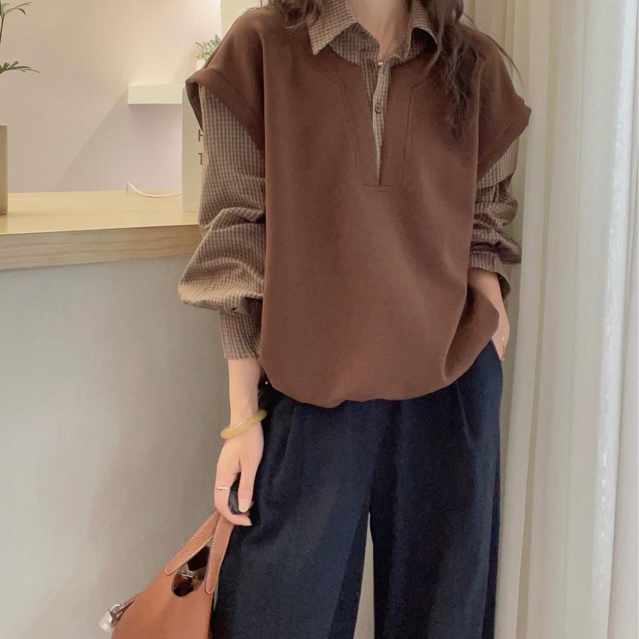 カジュアルながらも、どこか上品さを感じさせる一着。