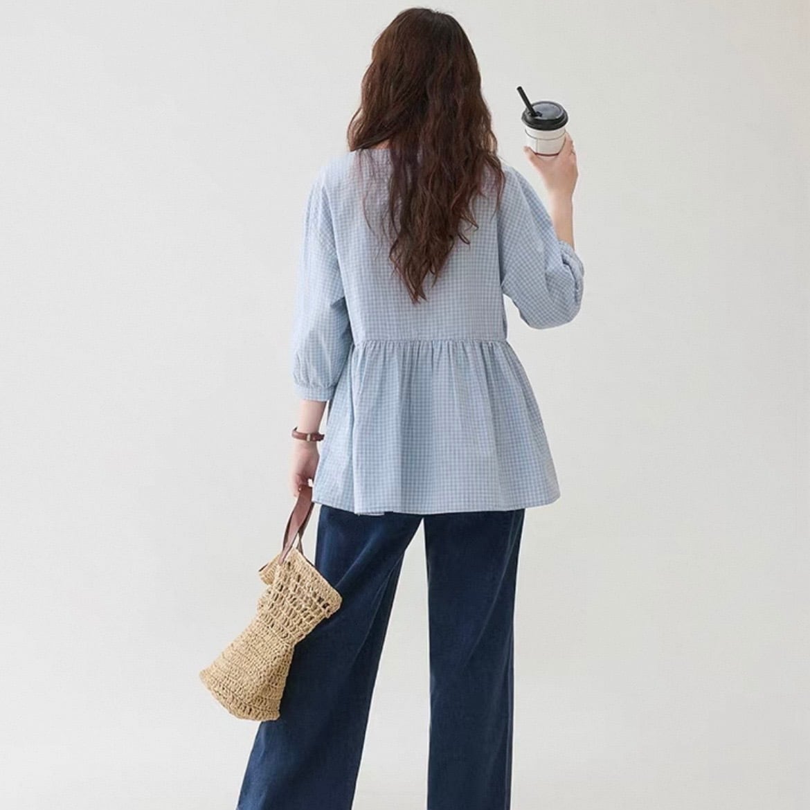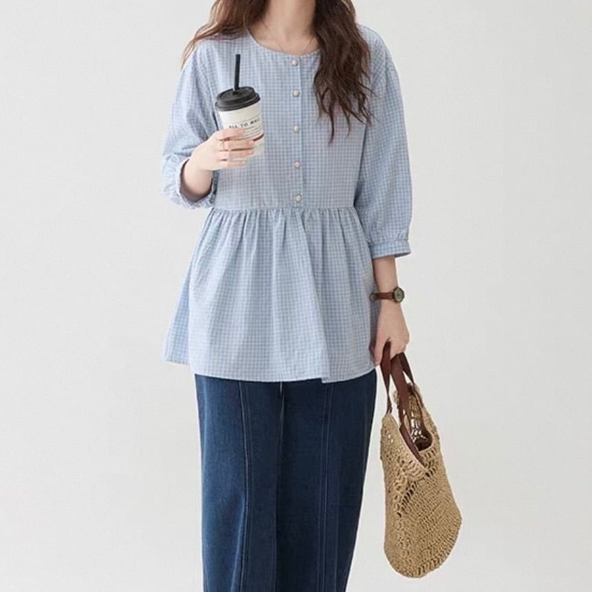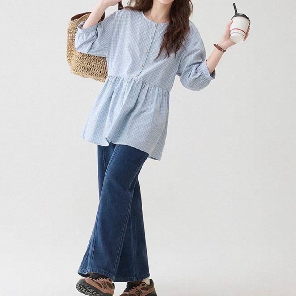 ボタンフロント ギャザー 長袖 Aライン チュニック L1071