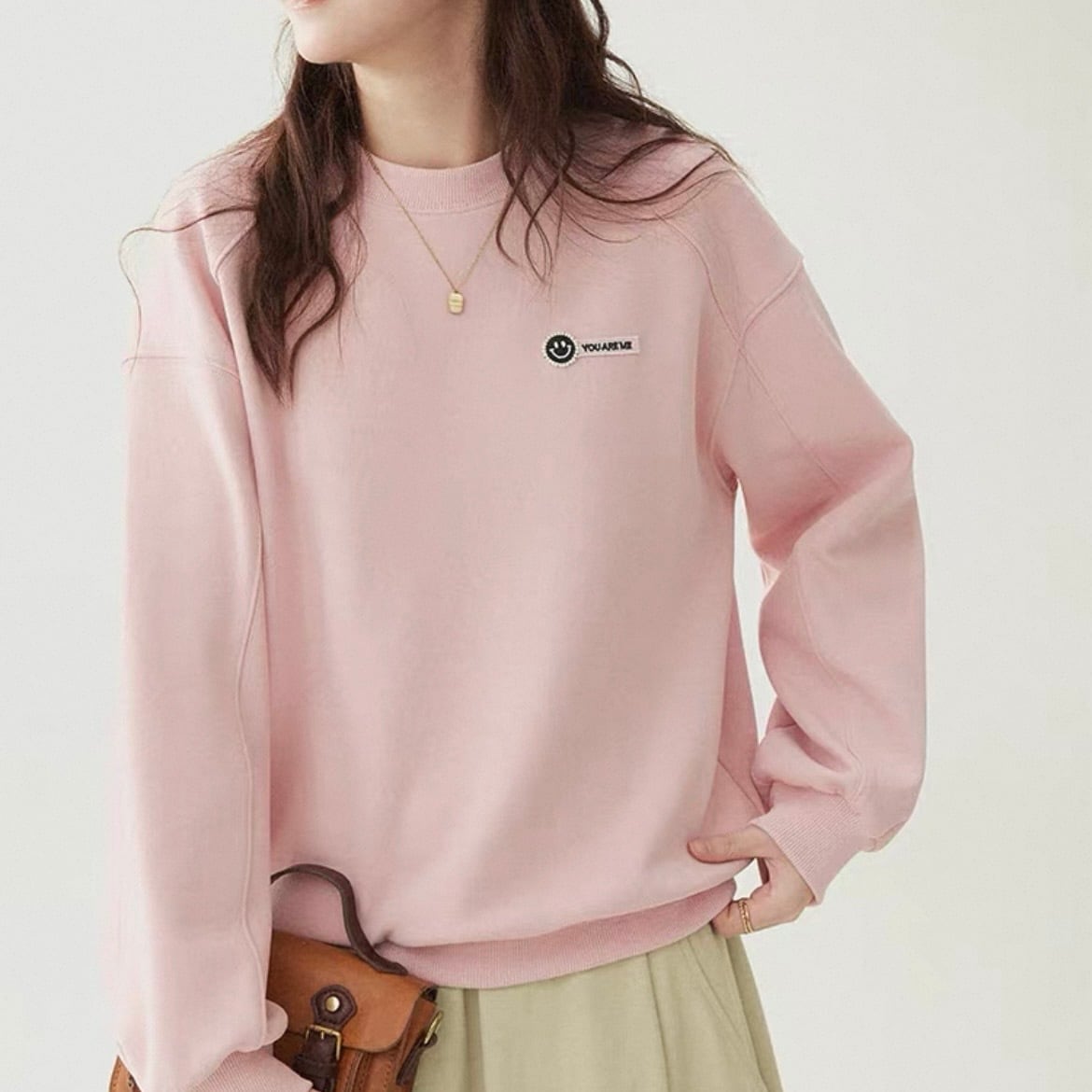 クルーネックで、どんなスタイルにも合わせやすいのが魅力です。
