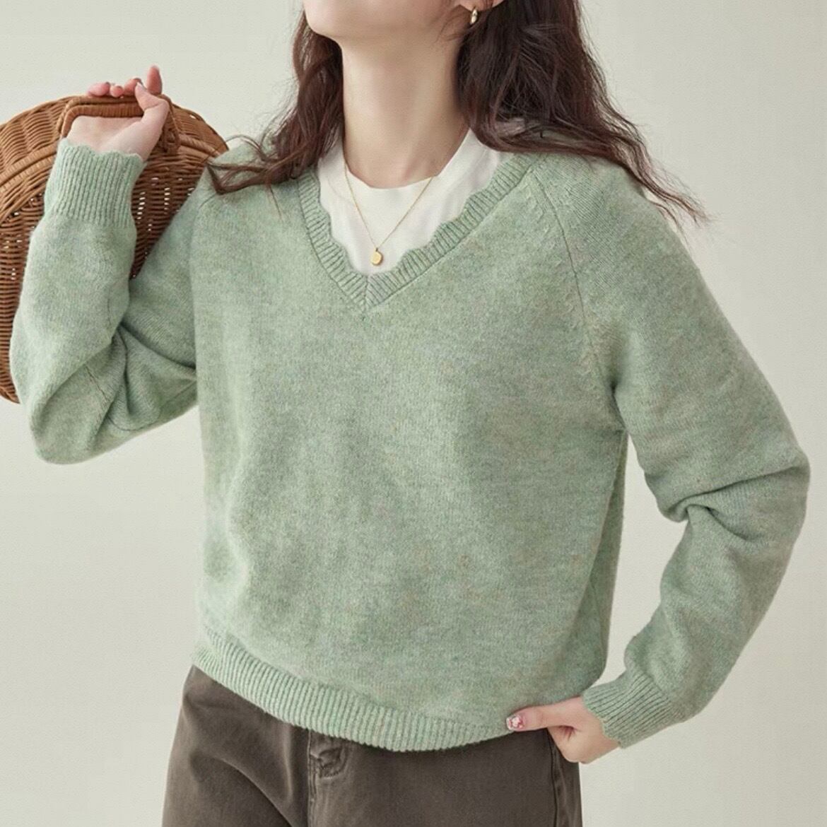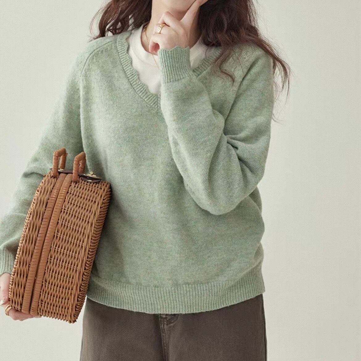 波型エッジ Vネック ニットセーター L1078