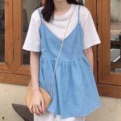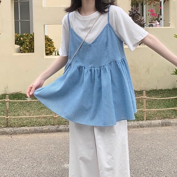 ギンガムチェックが目を引くキャミソールワンピース。