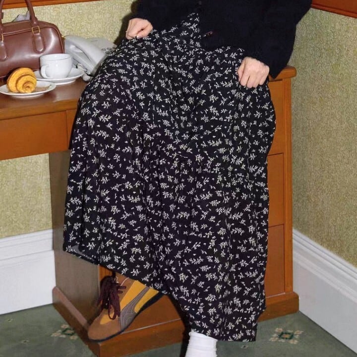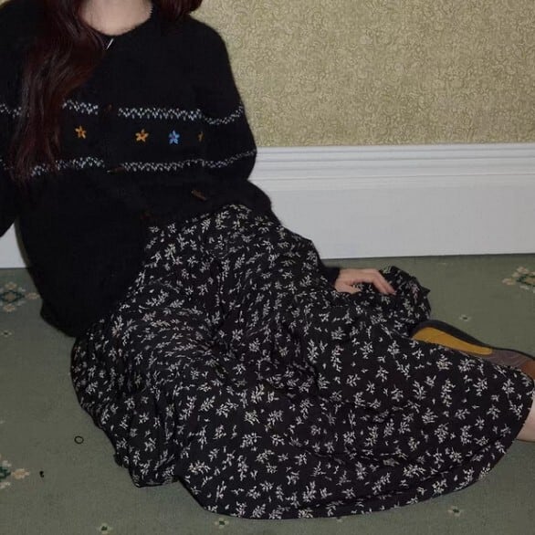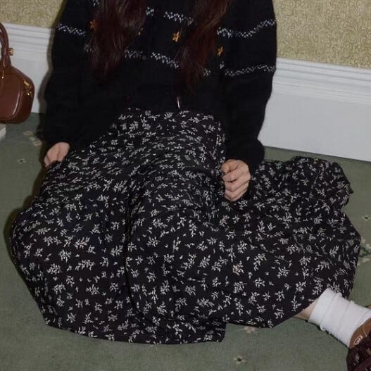 花柄 ミモレ丈 フレアロングスカート L1092