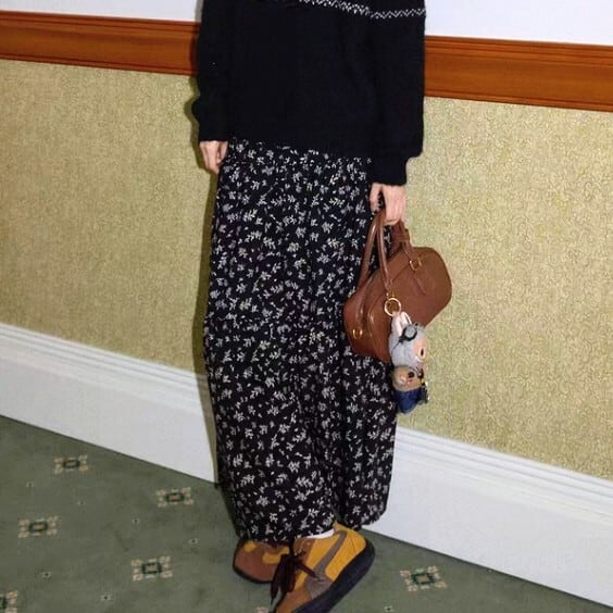 ミモレ丈なので、パンプスやブーツとの相性も抜群です。