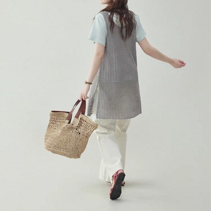 シンプルなTシャツやカットソーに重ねるだけで、こなれ感を演出。