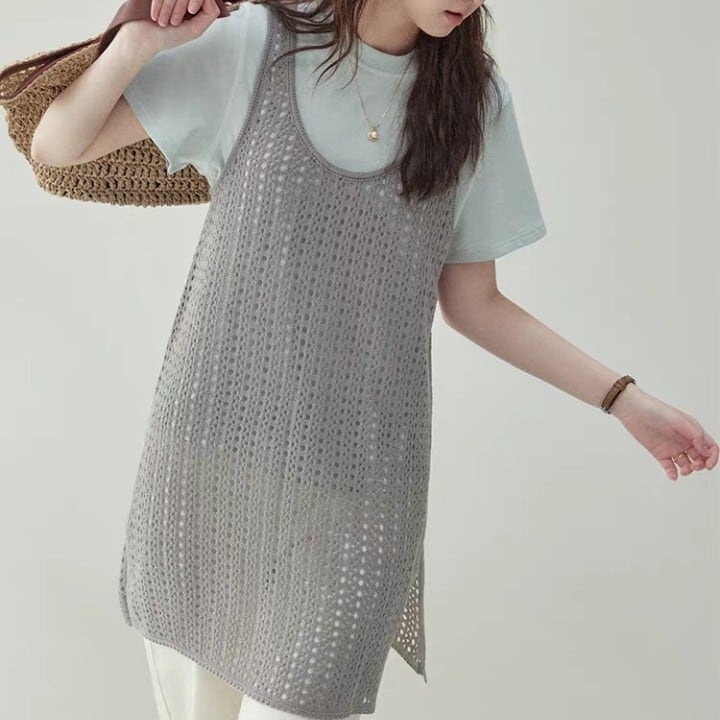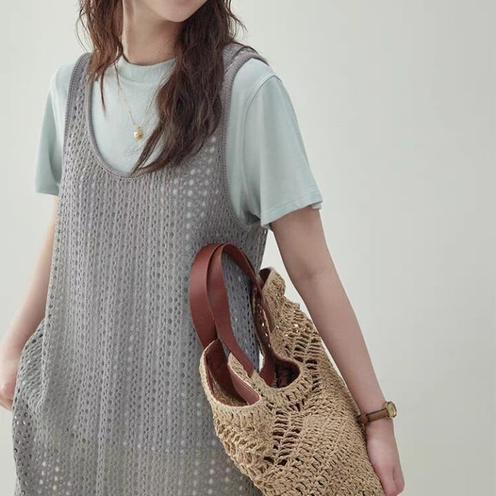ノースリーブ ロング丈 ニット ワンピース L1094