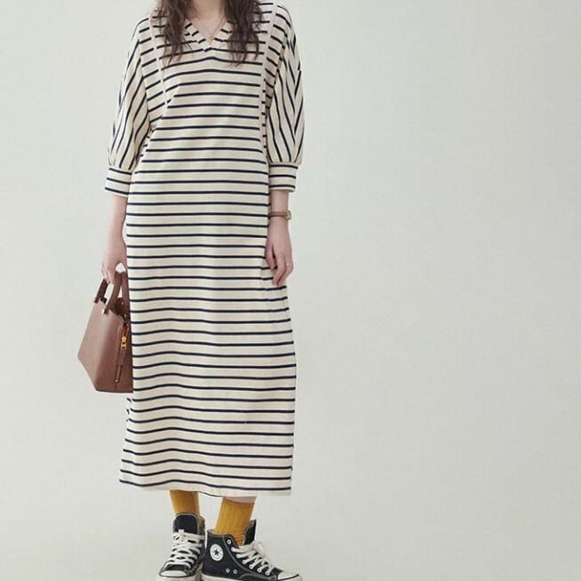 カジュアルにもきれいめにも着こなせるワンピース。