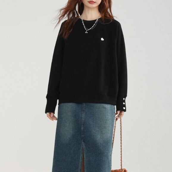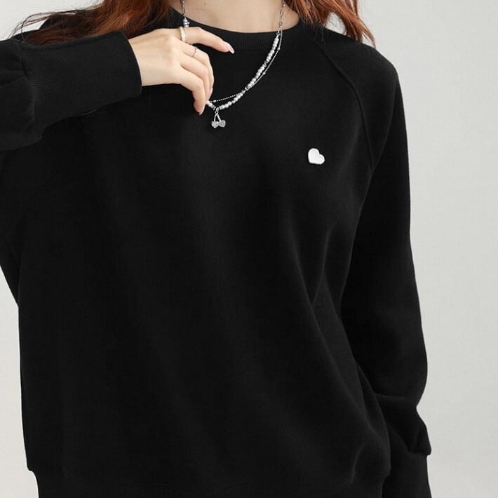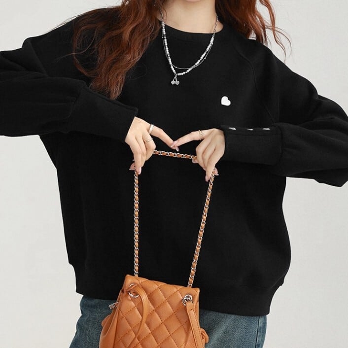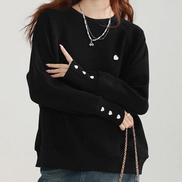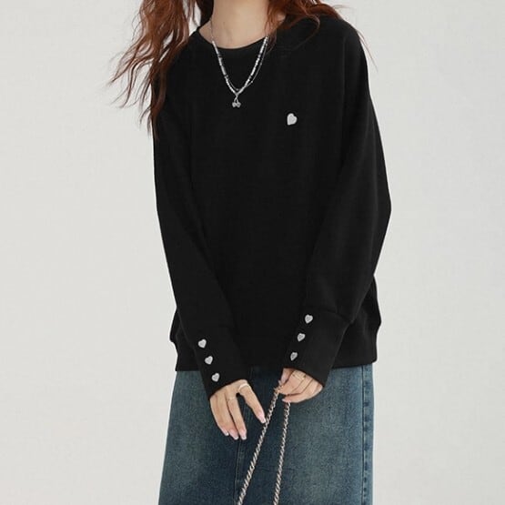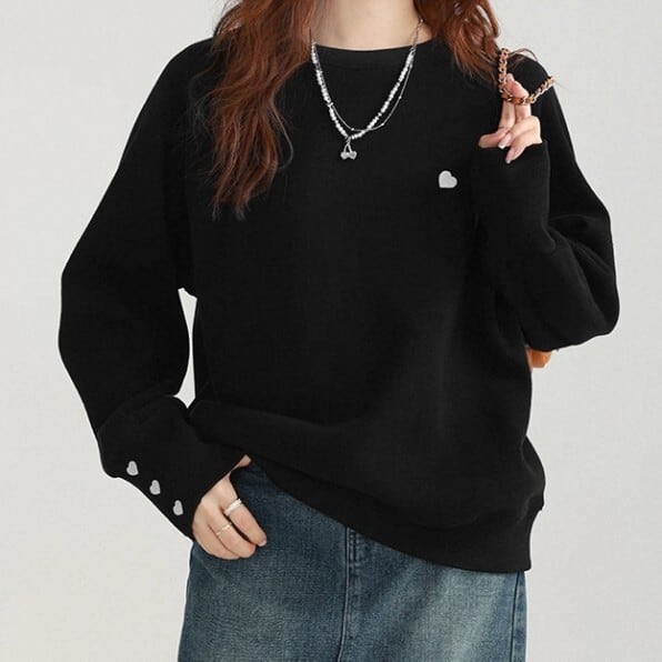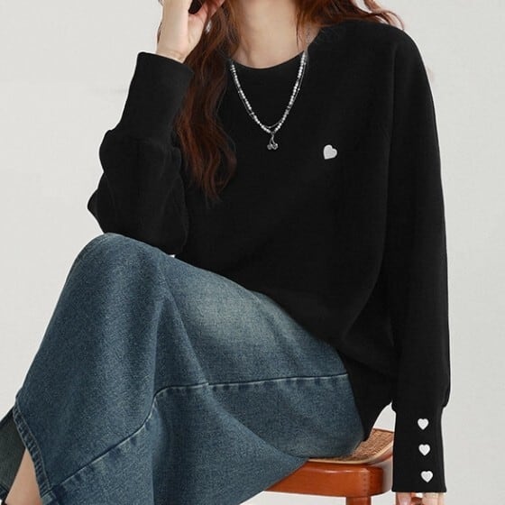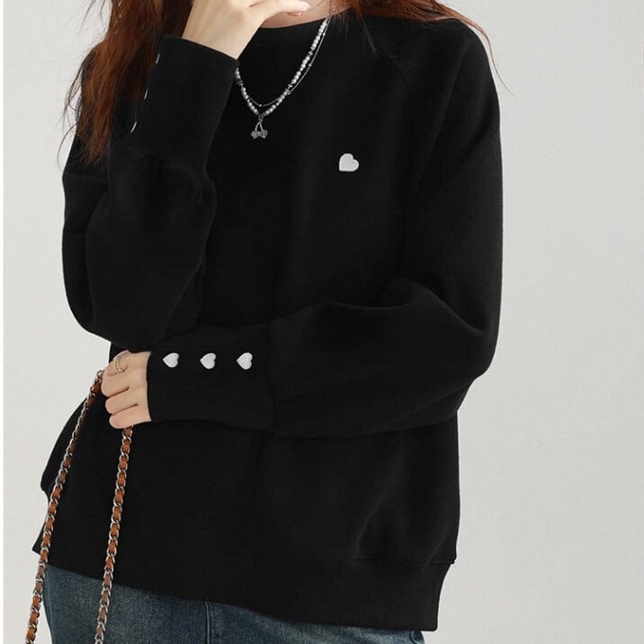 袖口にあしらわれたハートのデザインが、さりげない可愛らしさを演出。