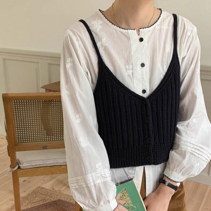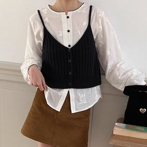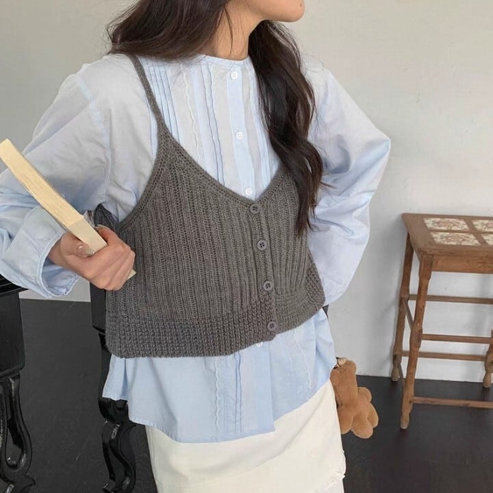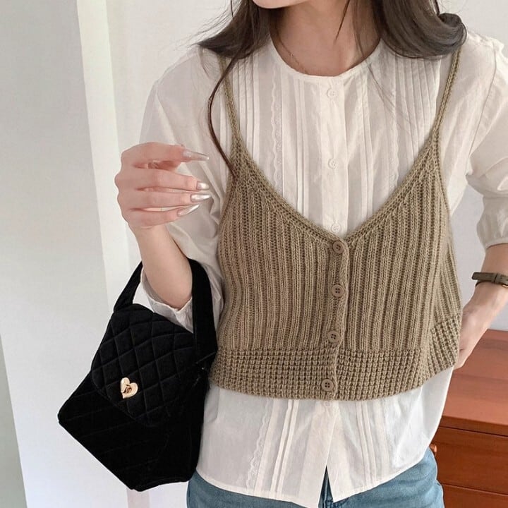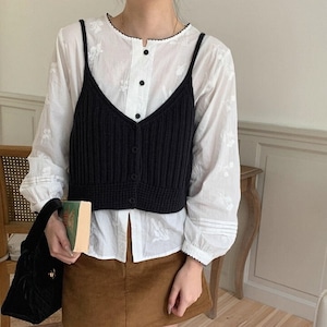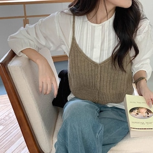 ボタンフロント クロップド丈 ニット キャミソール L1109