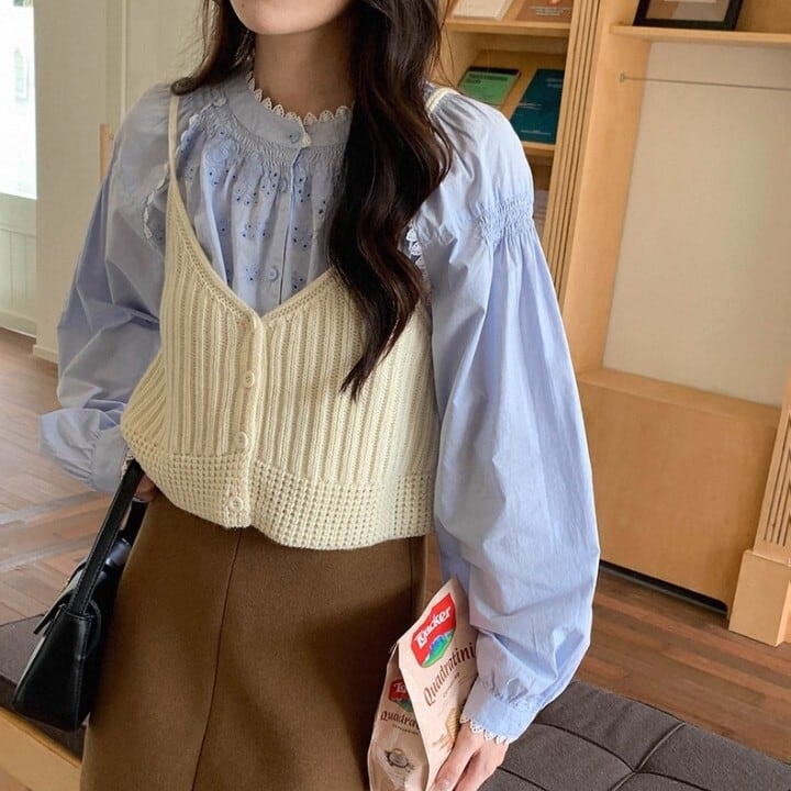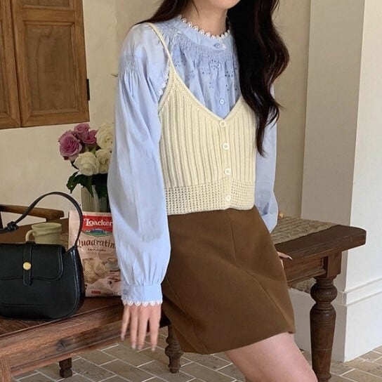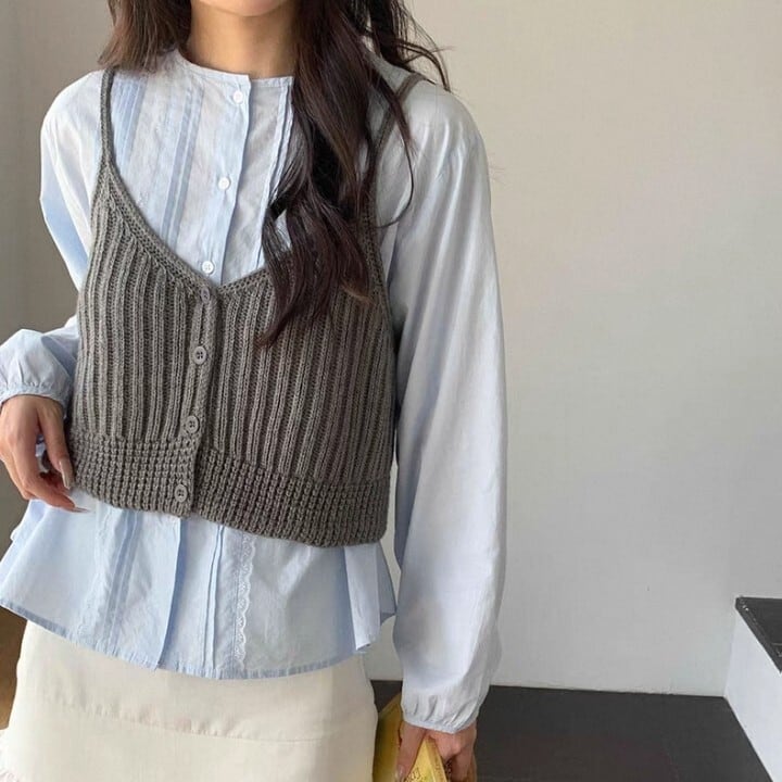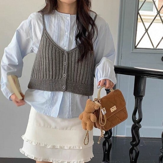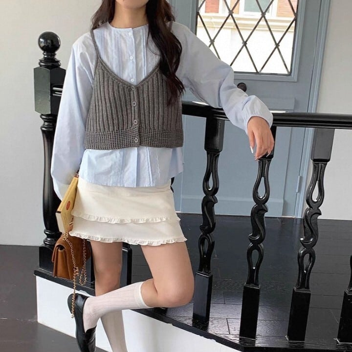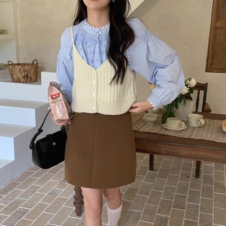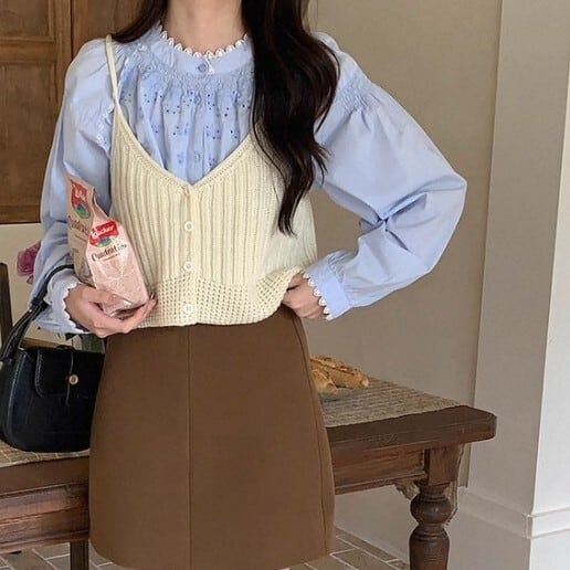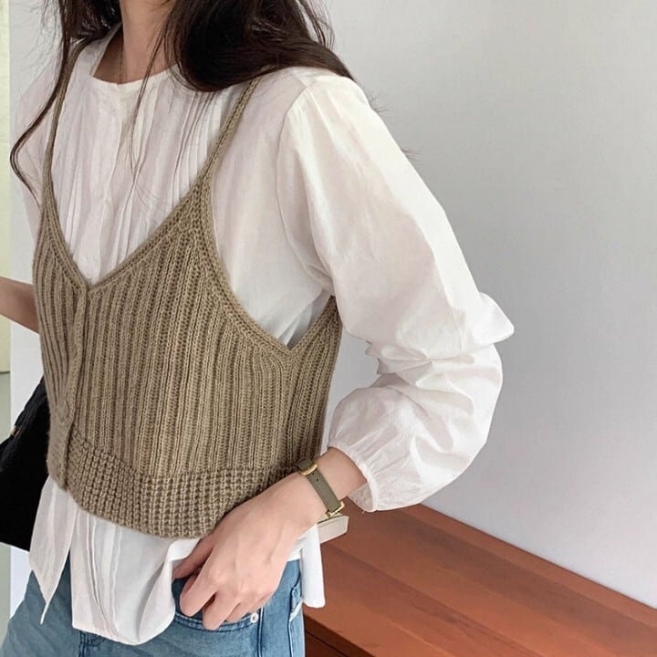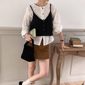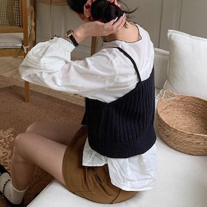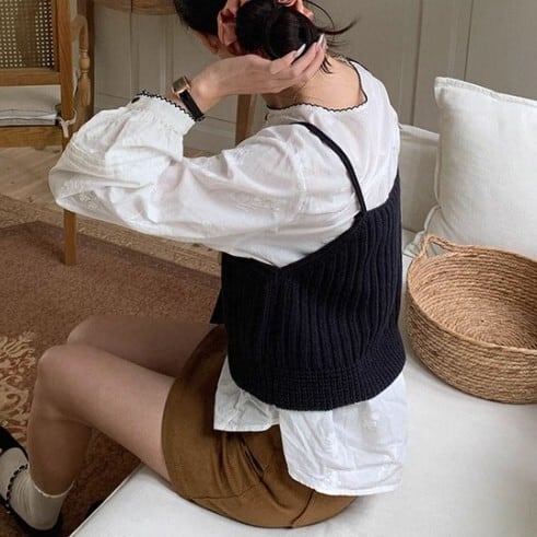 ブラウスやカットソーに重ね着して、いつもと違うレイヤードスタイルを楽しめます。