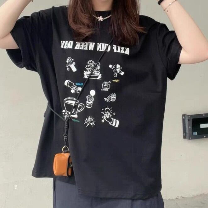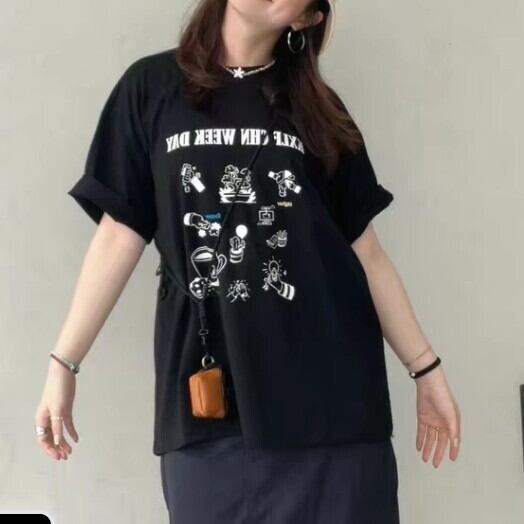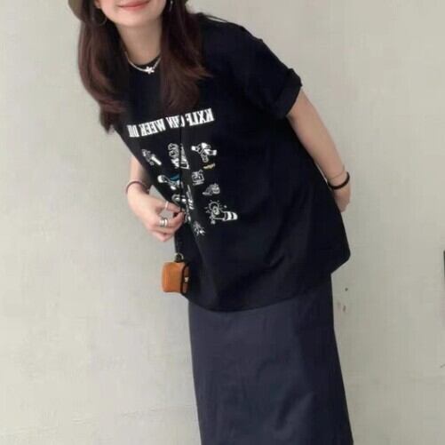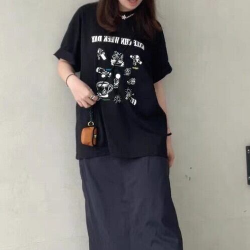 半袖 ミドル丈 ロゴプリント Tシャツ L1112
