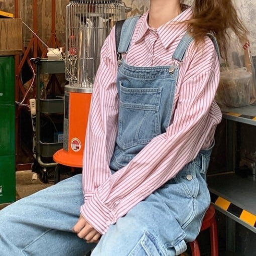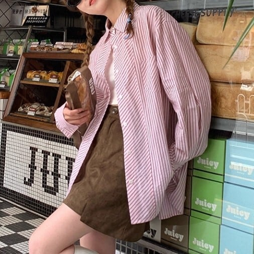 ストライプ柄 ヒップ丈 シャツ L1117