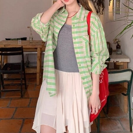 チェック柄 オーバーサイズ シャツ L1118