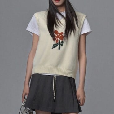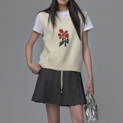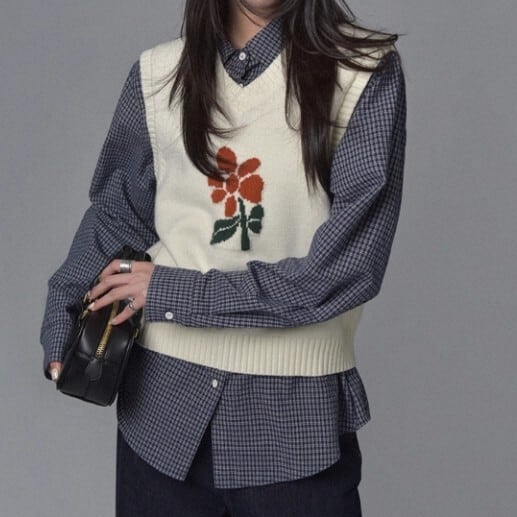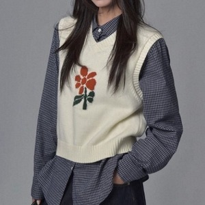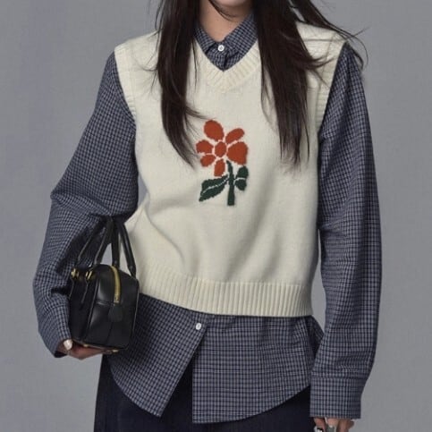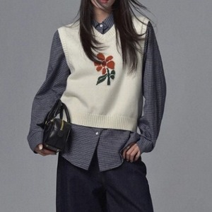 Vネック 花柄 ニットベスト L1125
