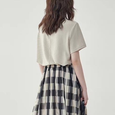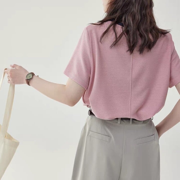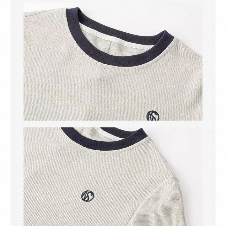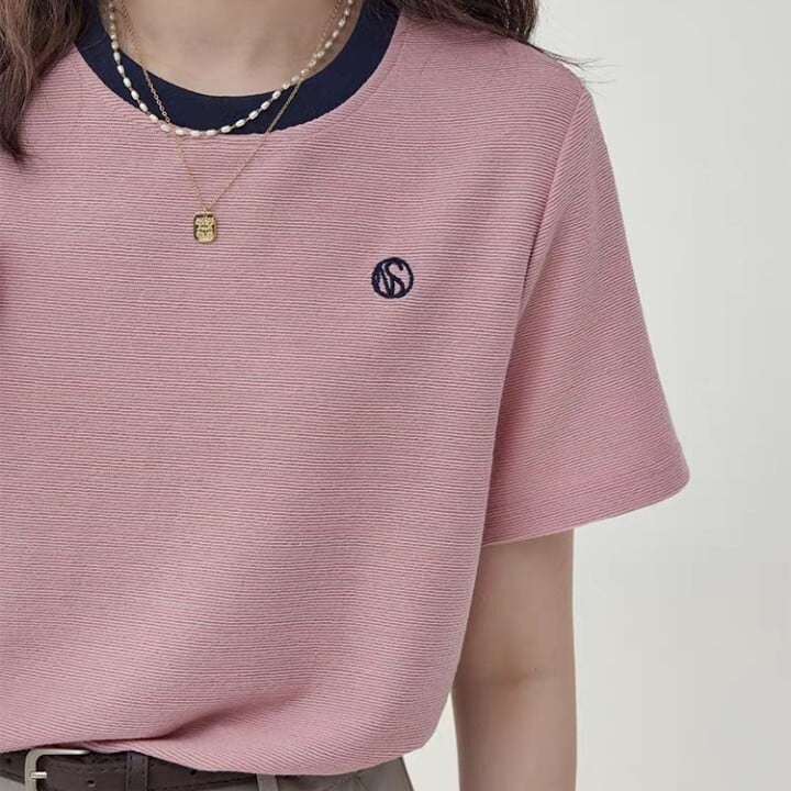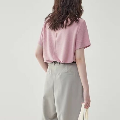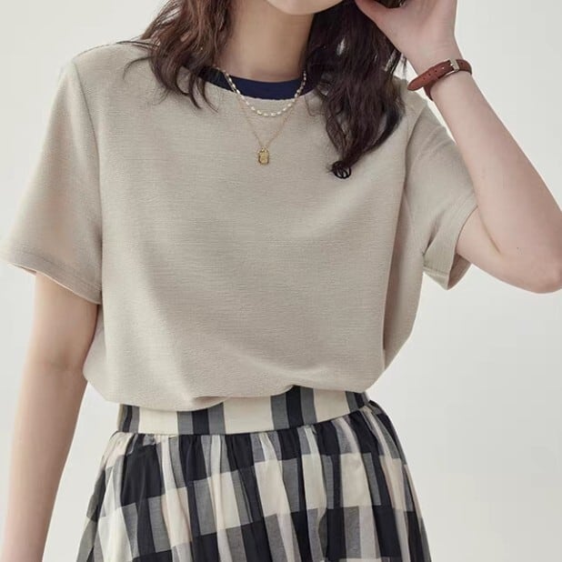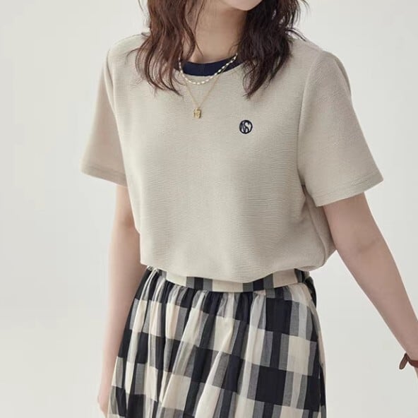 クルーネックで首元をすっきりと見せてくれます。