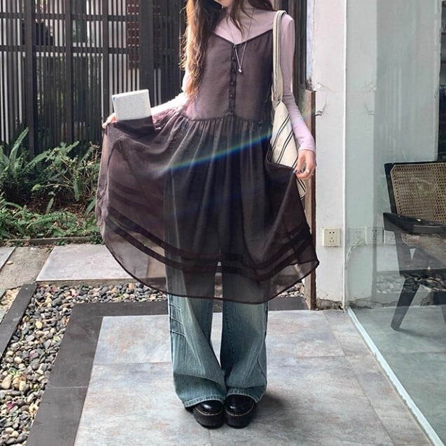 キャミソール ティアード ミモレ丈 ワンピース L1145
