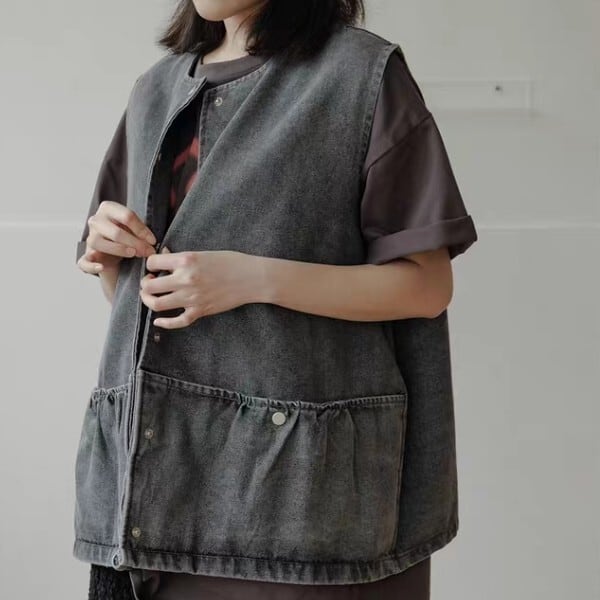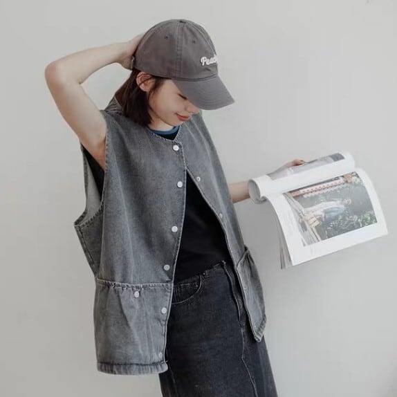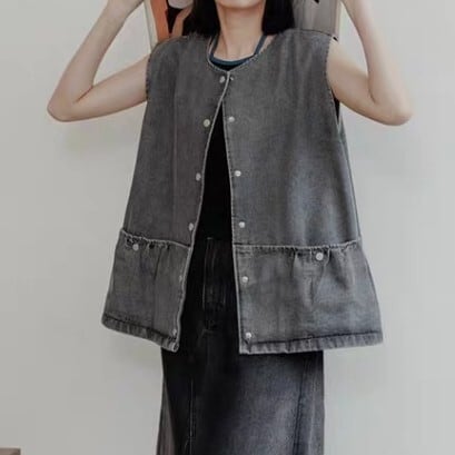 ボタンフロント パッチポケット ノースリーブ ベスト L1171